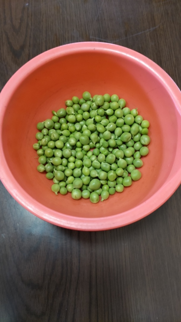 さて、今日は、えんどう豆をむいだから…豆ごはんにして食べよう!